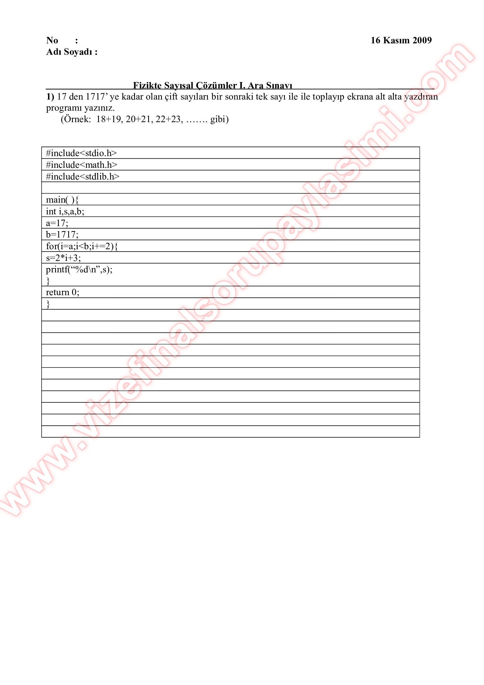 Fizikte Sayısal Çözümler Vize Soruları Ve Cevapları