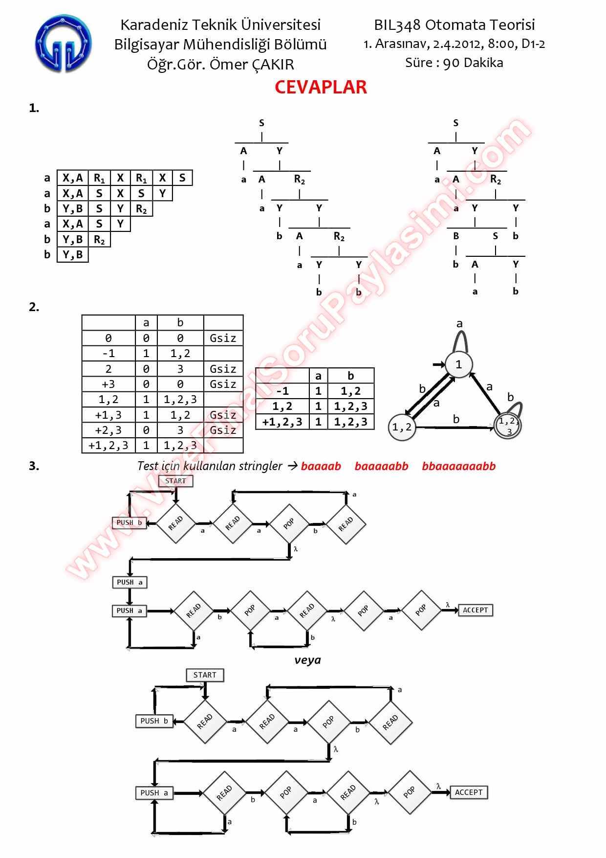 Vize ve Final Soruları / Karadeniz Teknik Üniversitesi / Otomata Teorisi Dersi