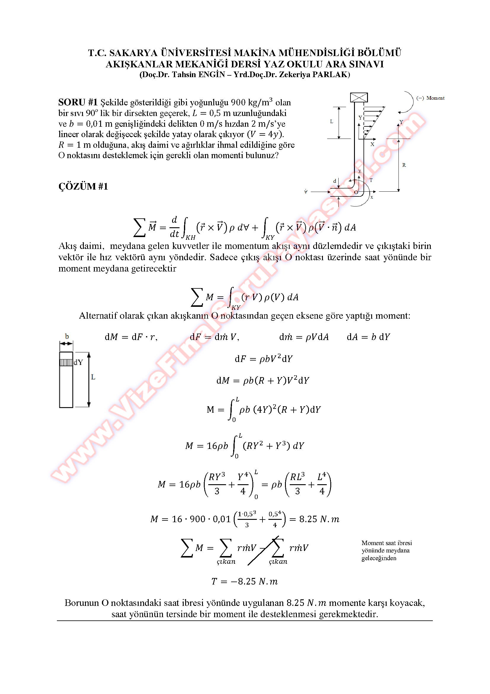 Vize ve Final Soruları / Sakarya Üniversitesi / Akışkanlar Mekaniği