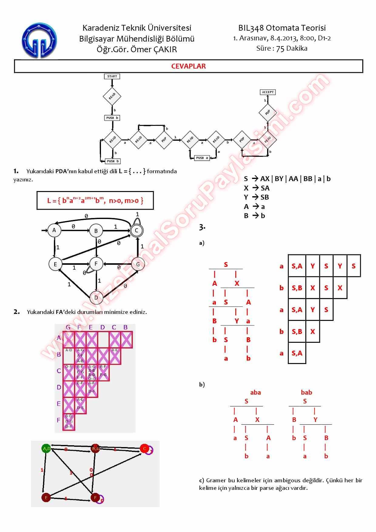 Vize ve Final Soruları / Karadeniz Teknik Üniversitesi / Otomata Teorisi Dersi