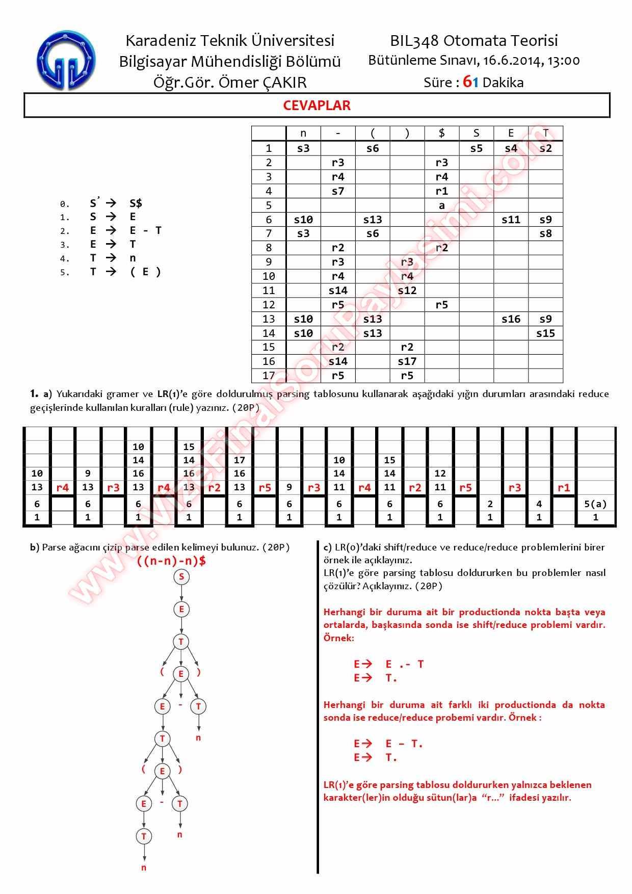 Otomata butunleme sorulari cozumleri 2014 GERİ DÖN-