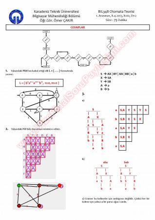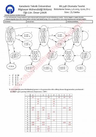Vize ve Final Soruları / Karadeniz Teknik Üniversitesi / Otomata Teorisi Dersi