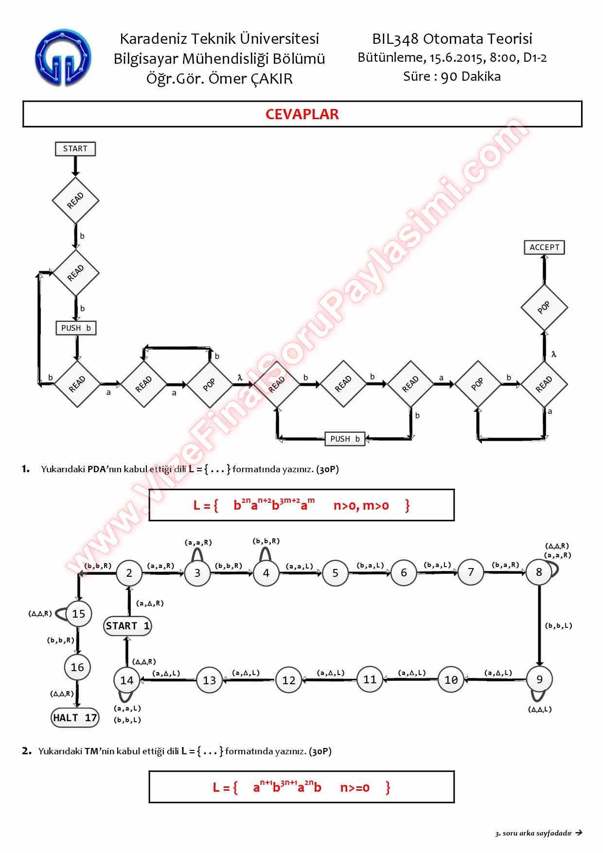 Otomata butunleme sorulari cozumleri 2015 GERİ DÖN-