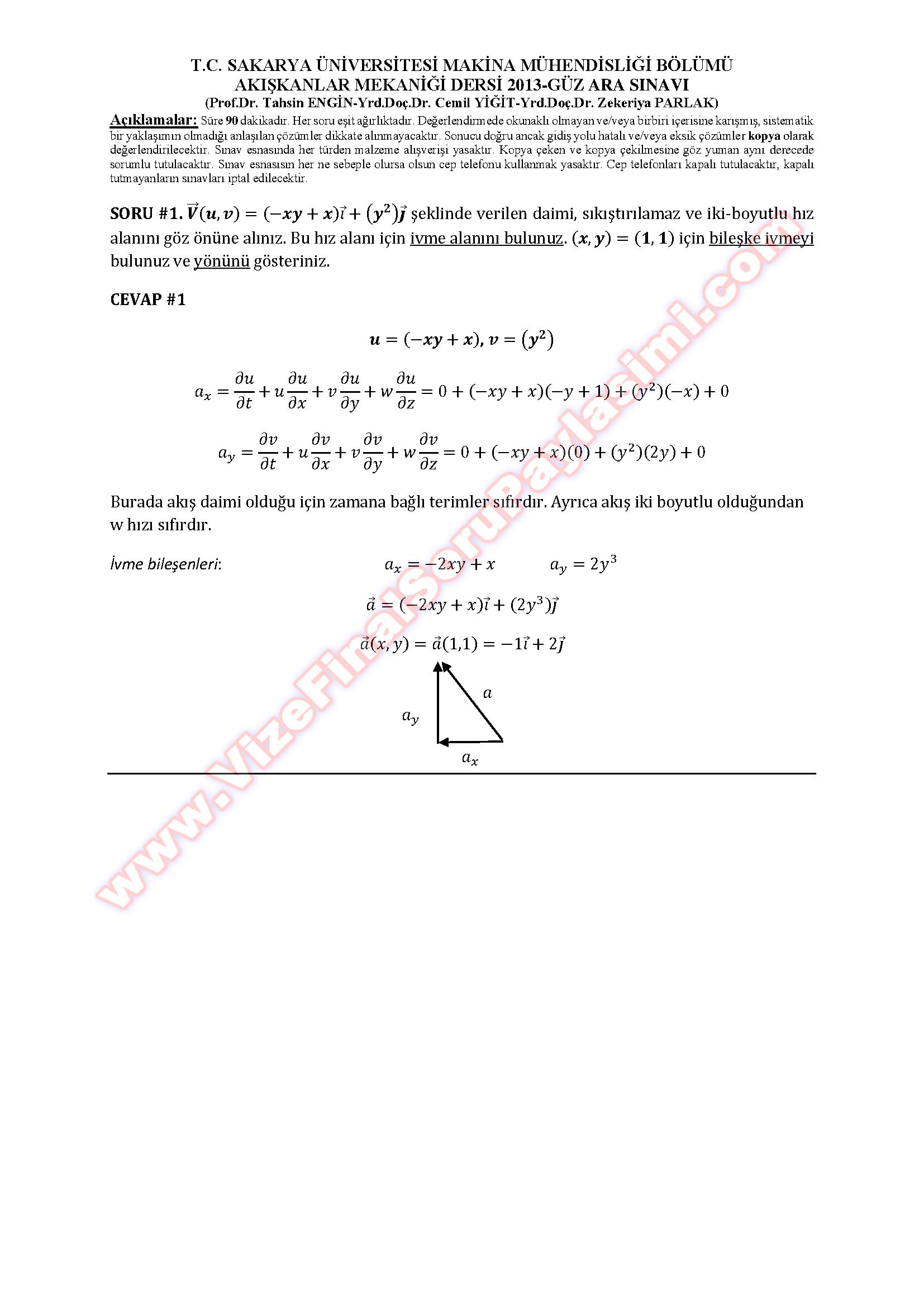 Akışkanlar Mekaniği Vize Soruları ve Cevapları - 2013