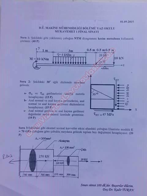 Mukavemet -2 Final Soruları - KTÜ 18-05-2015, 15:20