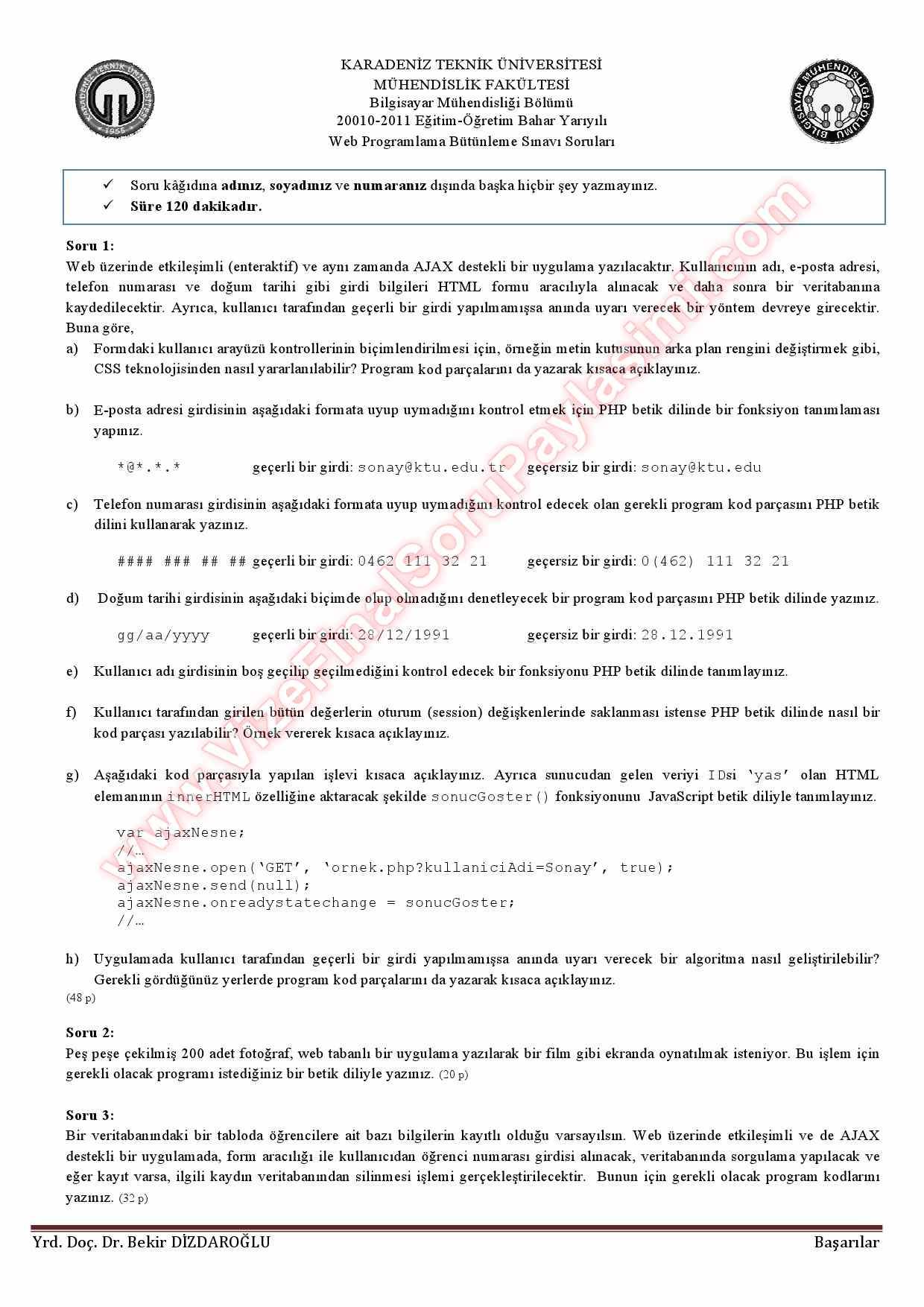 Vize ve Final Soruları / Karadeniz Teknik Üniversitesi / Web Programlama Dersi