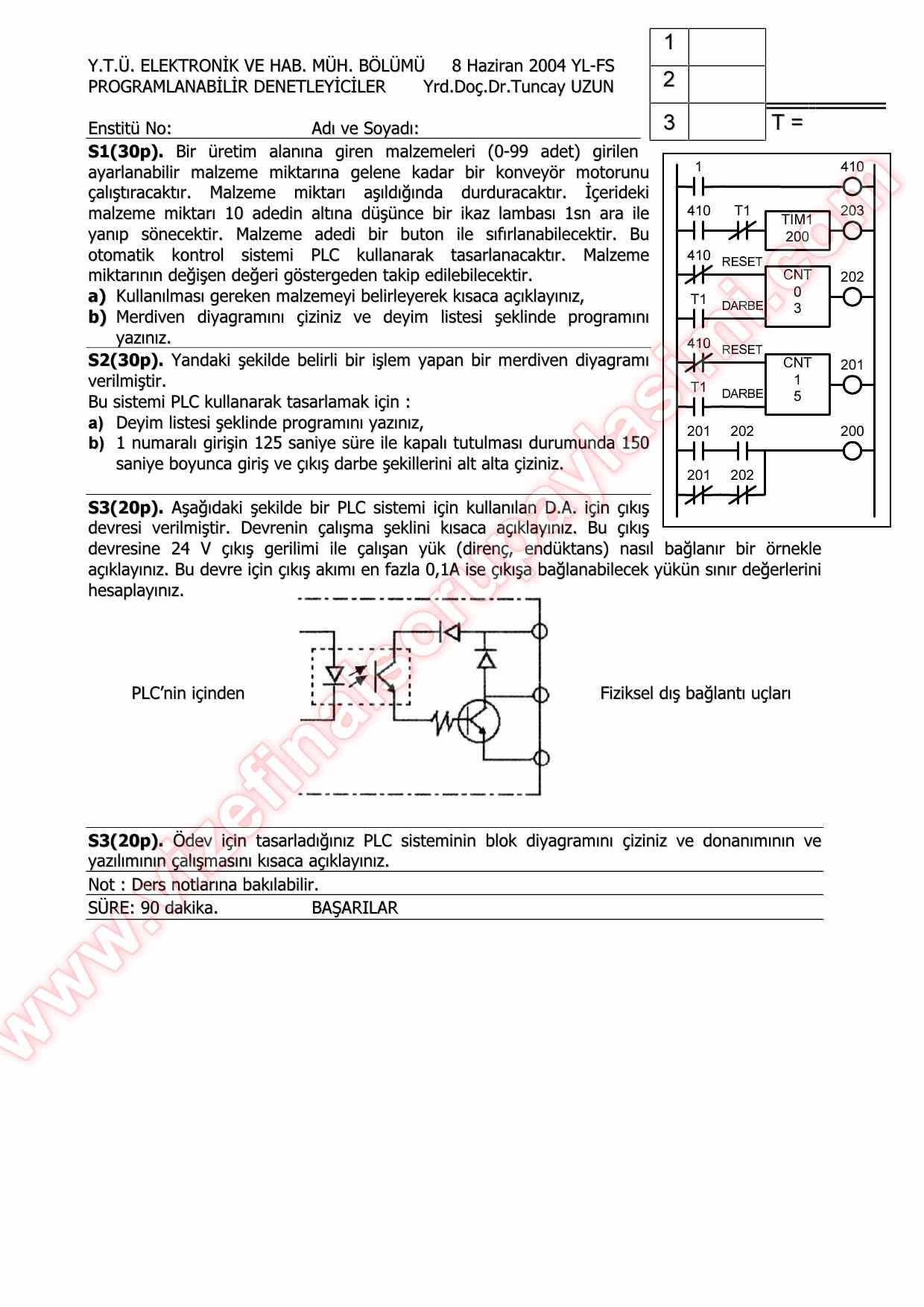Vize ve Final Soruları / Yıldız Teknik Üniversitesi / Programlanabilir Denetleyiciler Dersi