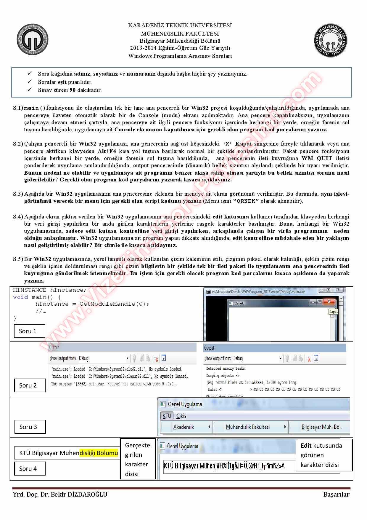 Vize ve Final Soruları / Karadeniz Teknik Üniversitesi / Windows Programlama Dersi