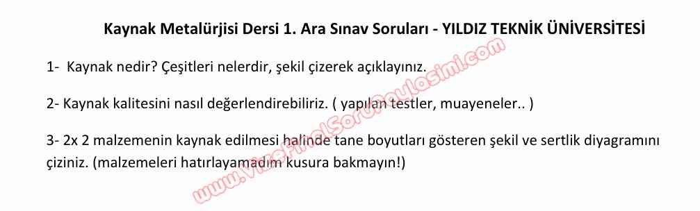 Vize ve Final Soruları / Yıldız Teknik Üniversitesi / Kaynak Metalürjisi Dersi