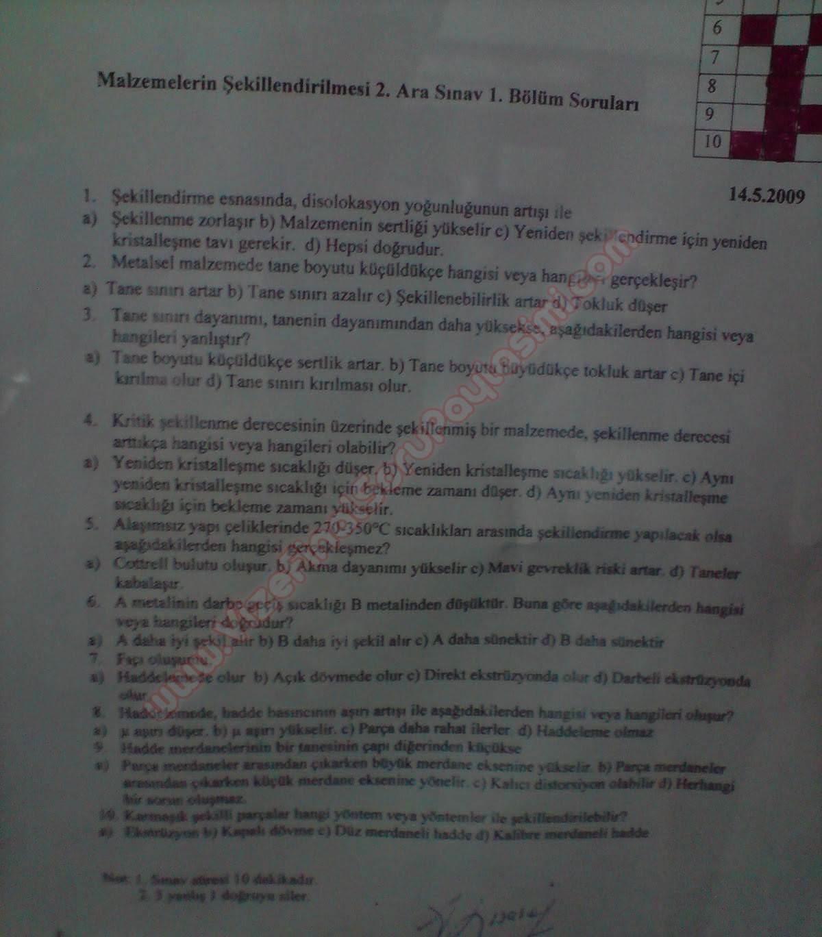 Malzemelerin Şekillendirilmesi 1. Vize Soruları 16-09-2015, 15:33