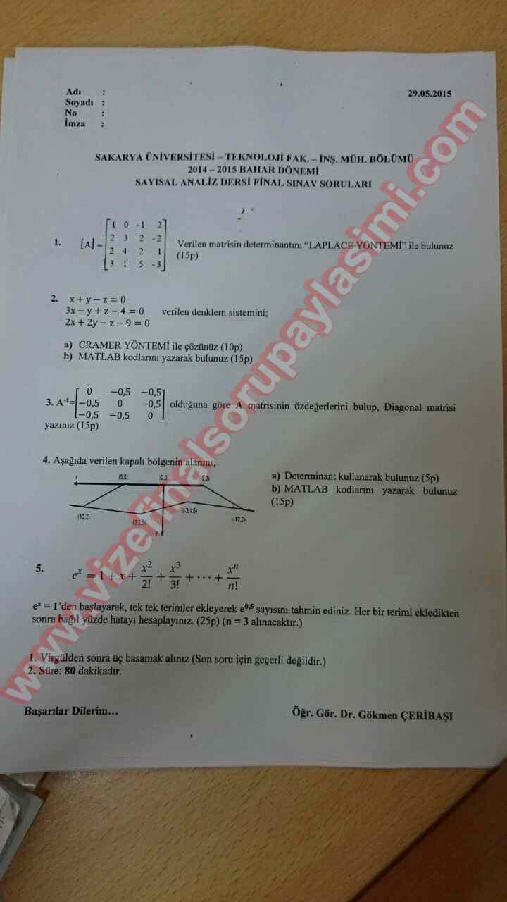 Vize ve Final Soruları / Sakarya Üniversitesi / Sayısal Analiz Dersi