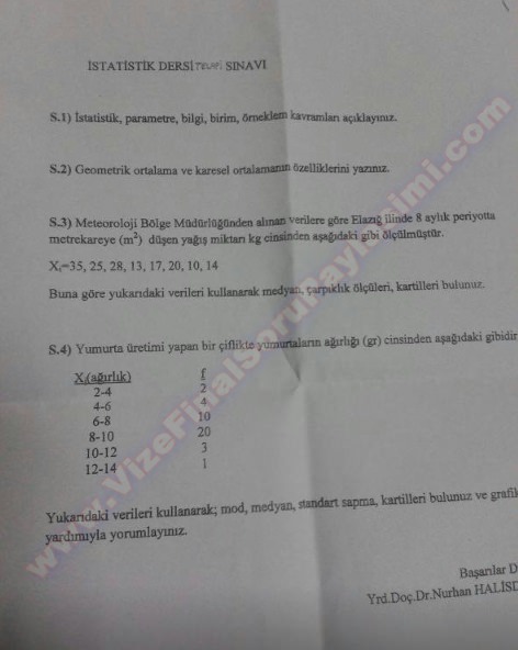 Vize ve Final Soruları / Fırat Üniversitesi / İstatistik Dersi