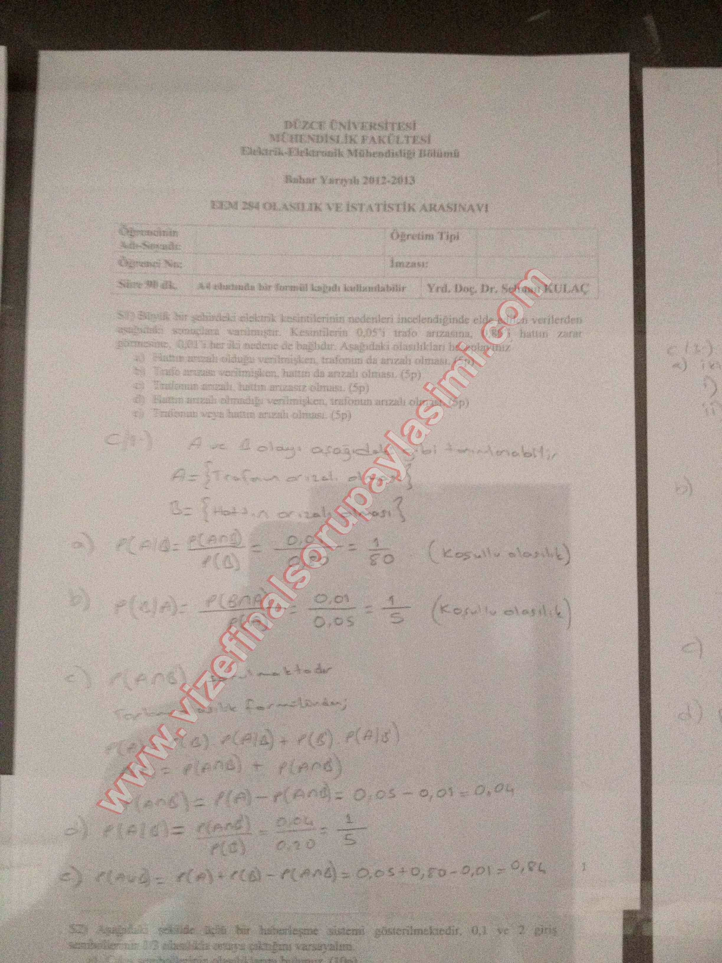 Olasılık Ve İstatistik Vize Soruları Ve Cevapları
