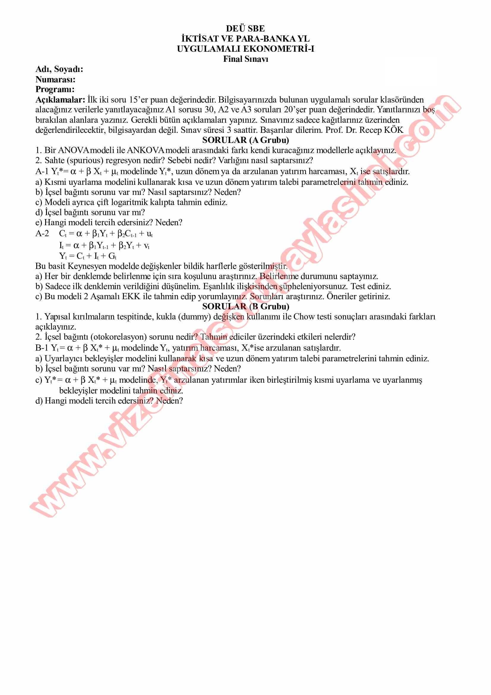 Ekonometri Final Soruları 23-04-2015, 17:54