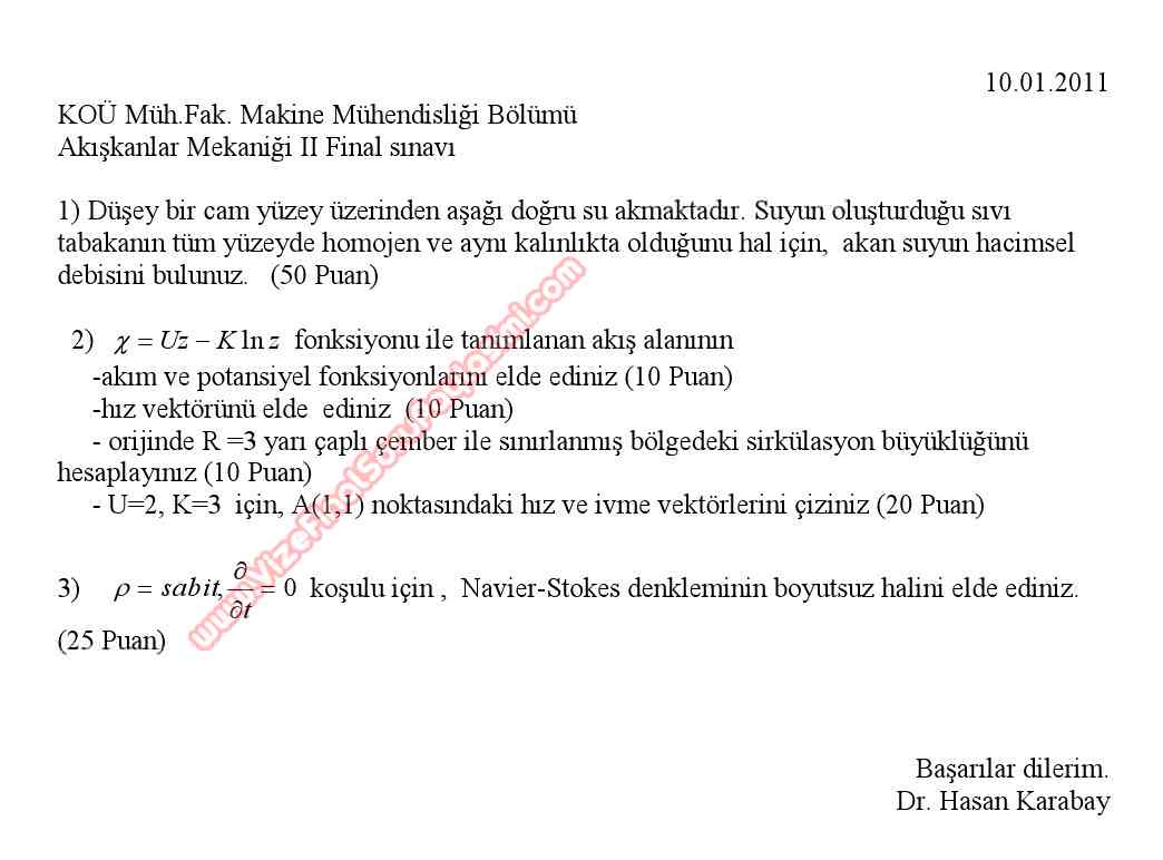 akiskanlar mekanigi-2 mekanigi2 final sorulari kou 2011
