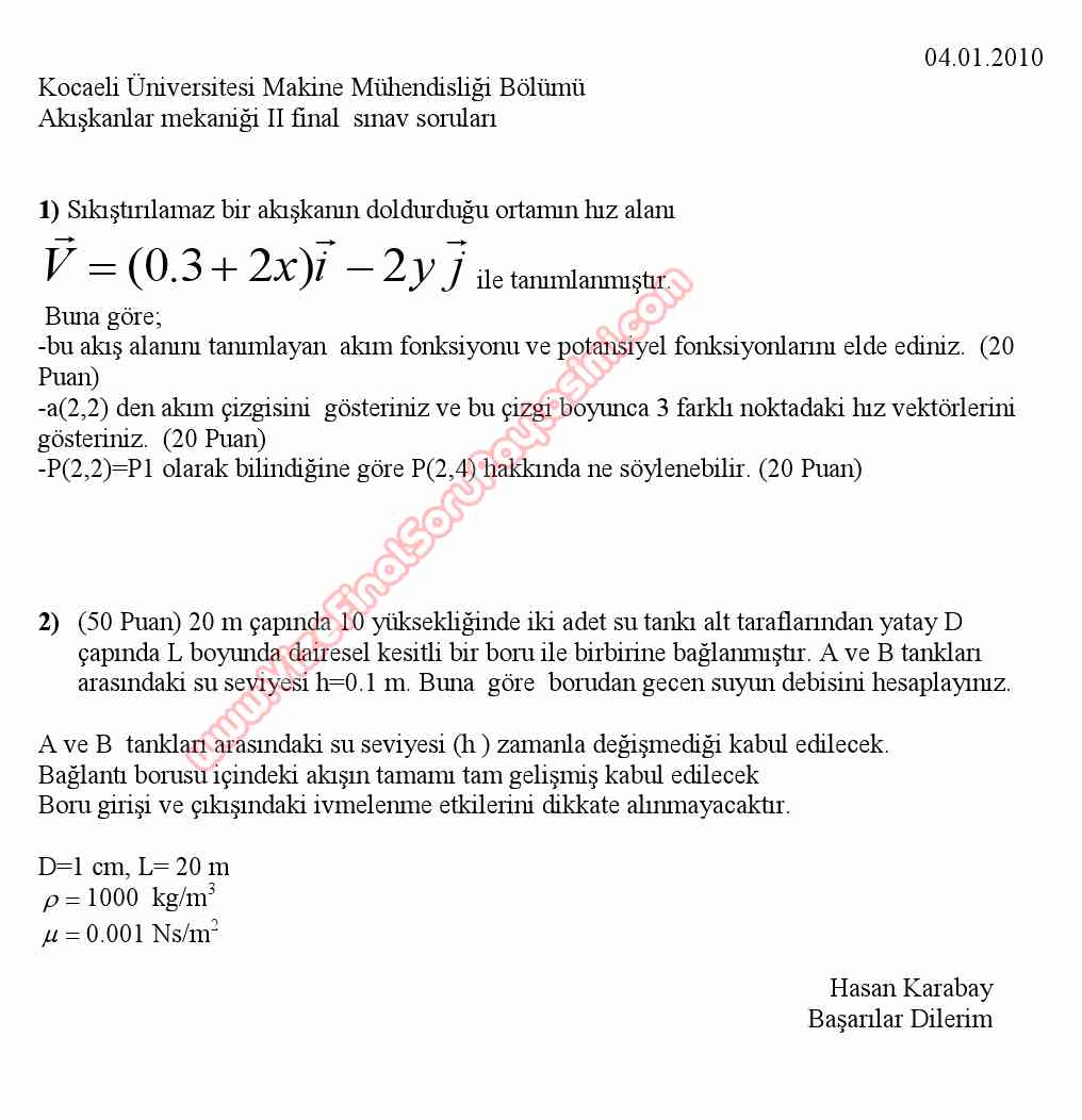 akiskanlar mekanigi-2 mekanigi2 final sorulari kou kocaeli