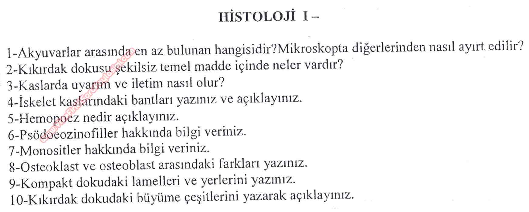 Histoloji Dersi Sınav Soruları 25-10-2015, 09:53