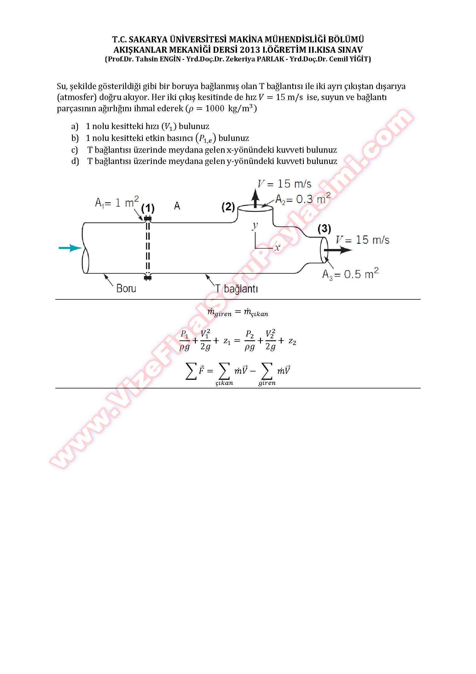 Vize ve Final Soruları / Sakarya Üniversitesi / Akışkanlar Mekaniği