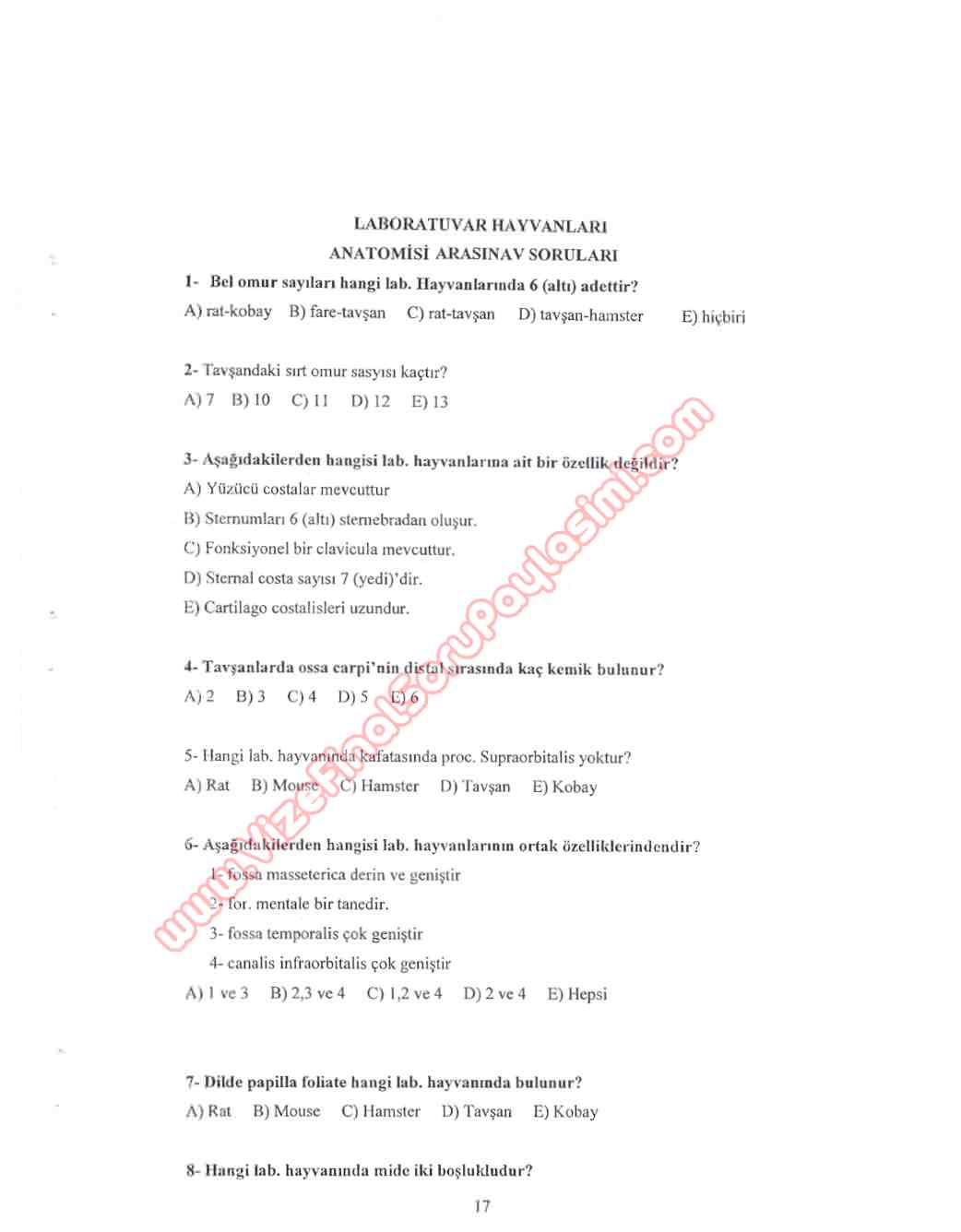 Laboratuvar Hayvanları Anatomisi Dersi Vize Soruları 25-10-2015, 22:14