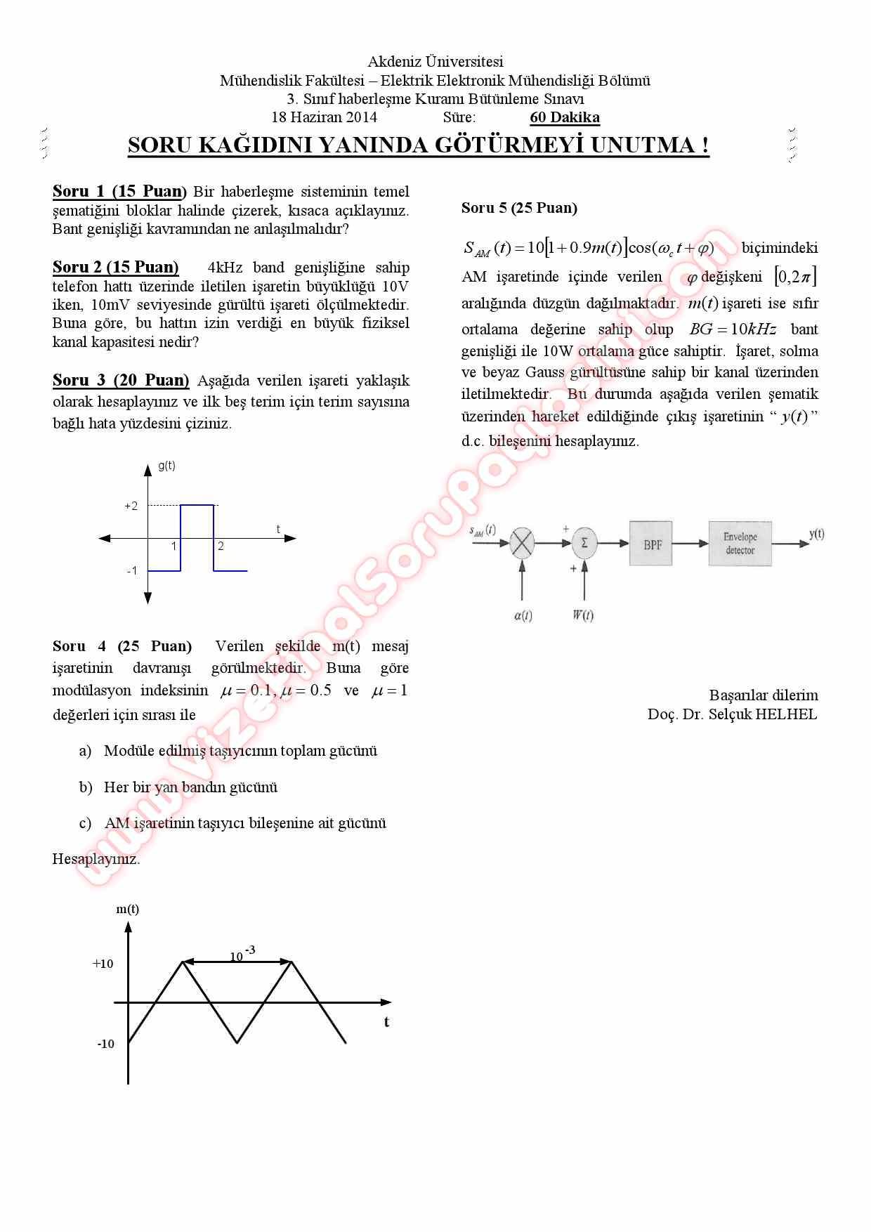 Vize ve Final Soruları / Akdeniz Üniversitesi / Haberleşme Kuramı Dersi