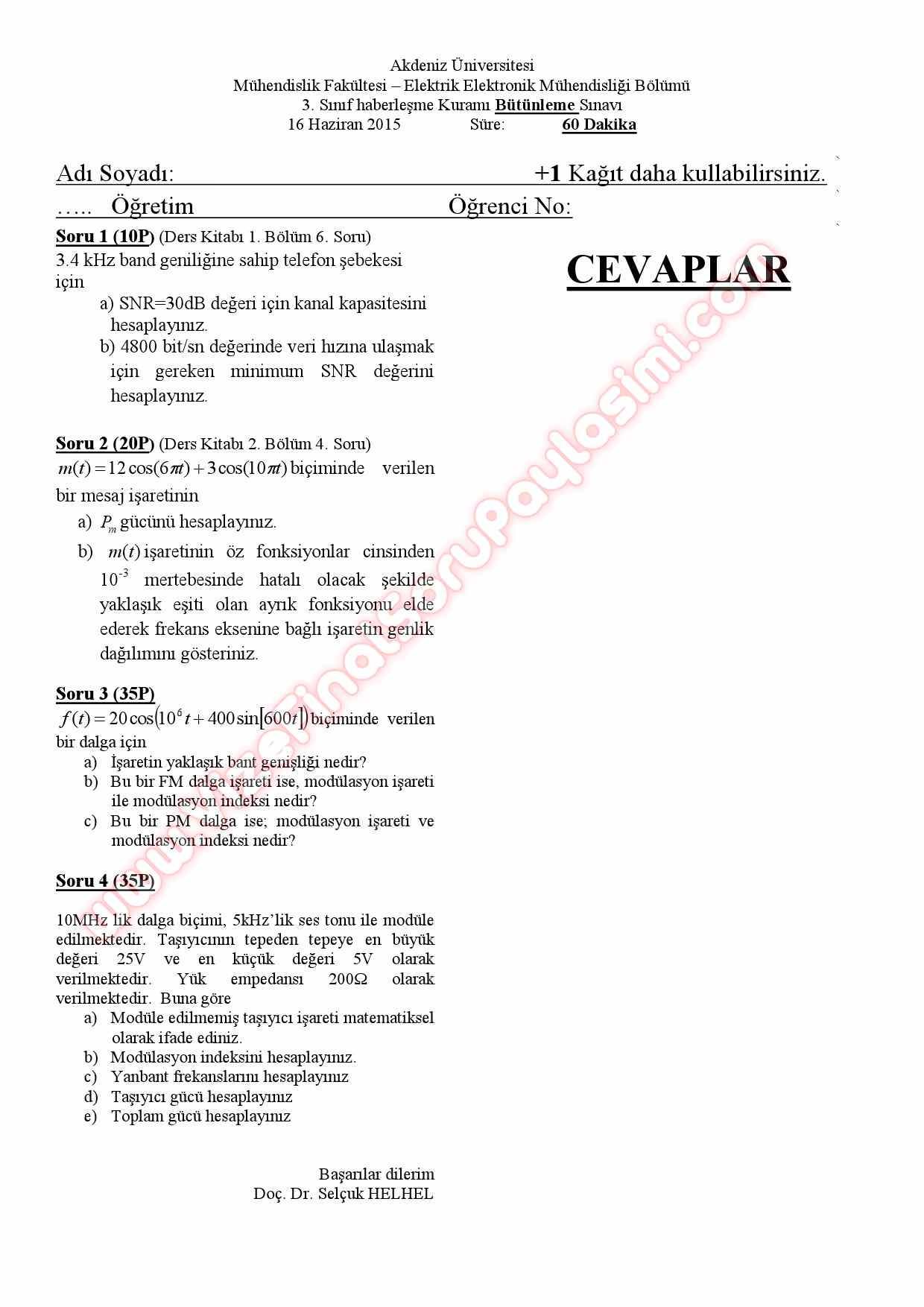 Vize ve Final Soruları / Akdeniz Üniversitesi / Haberleşme Kuramı Dersi