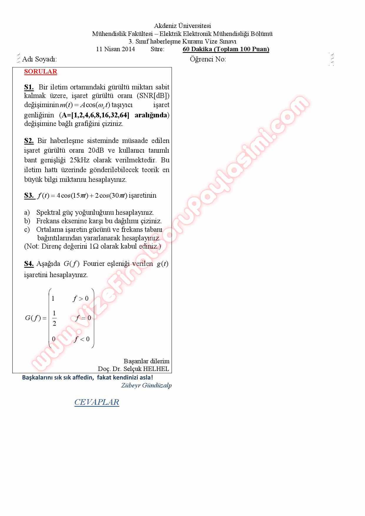 Vize ve Final Soruları / Akdeniz Üniversitesi / Haberleşme Kuramı Dersi