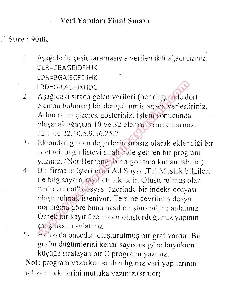 Veri Yapıları Dersi Final Soruları 21-07-2014, 17:36