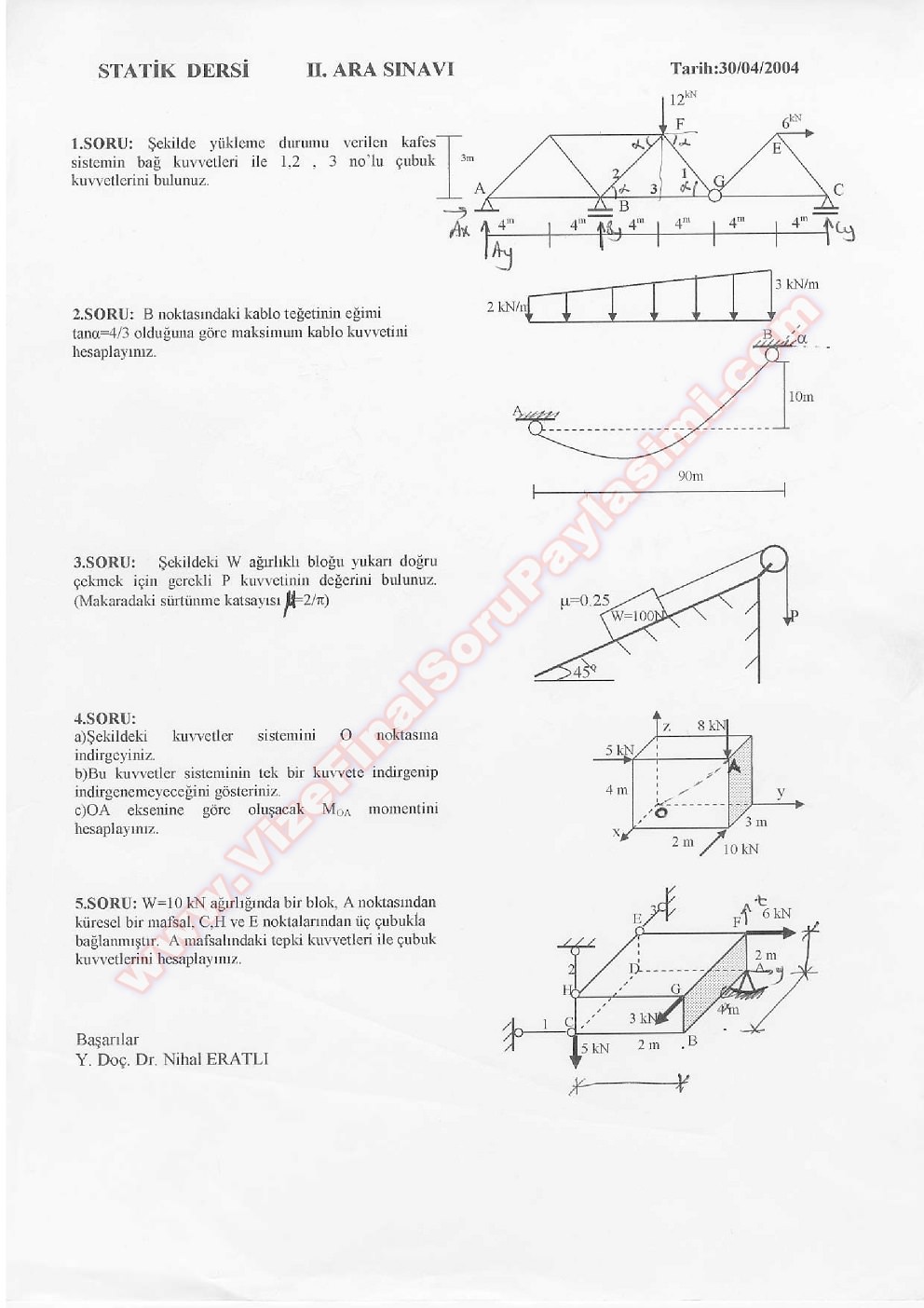 Statik Dersi 2. Yıl İçi Sınav Soruları 23-10-2014, 01:40