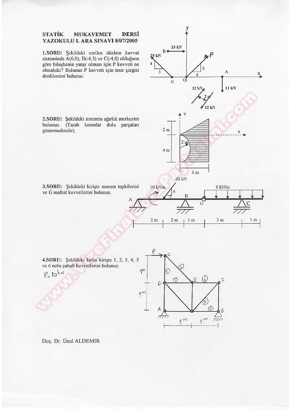 Statik Dersi 2. Vize Soruları - 2005 27-10-2015, 20:54