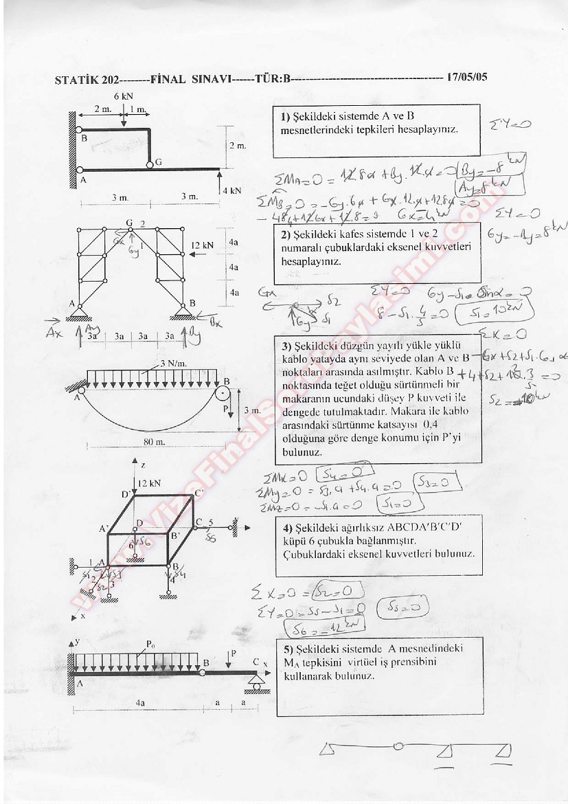 Yapı Statiği Final Soruları -2005 15-05-2015, 13:45