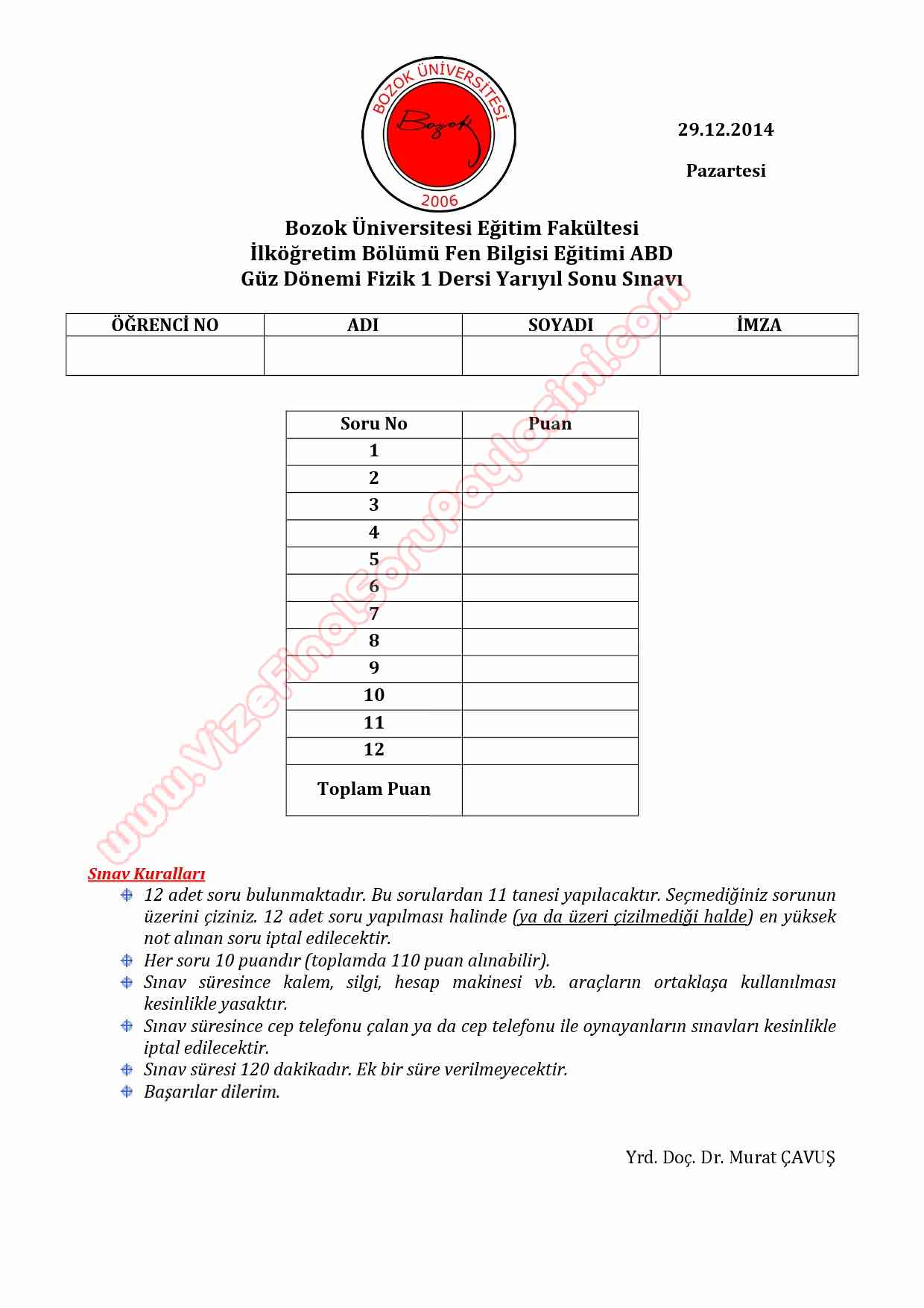 Vize ve Final Soruları / Bozok Üniversitesi / Fizik-1