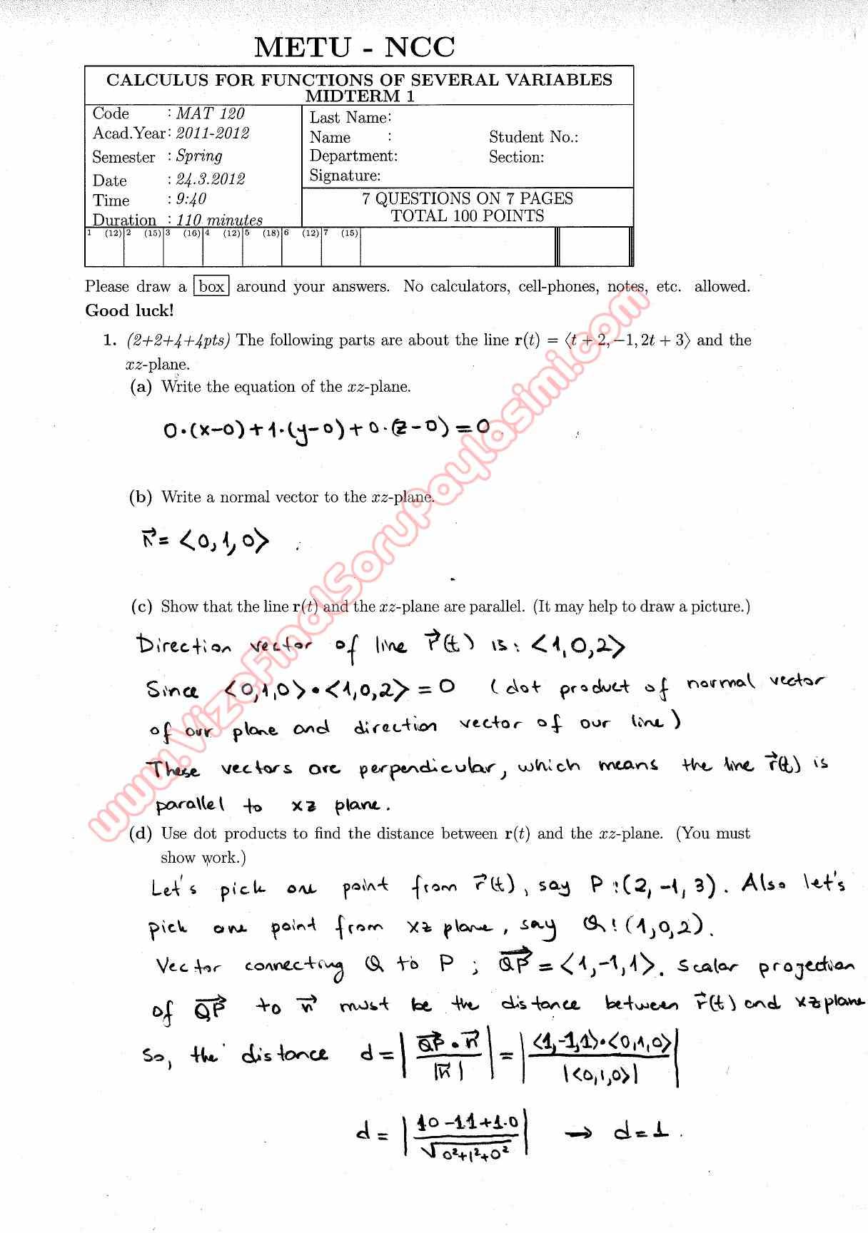 Calculus Functions Several Variables Questions Solutions Midterm Exam GERİ DÖN-