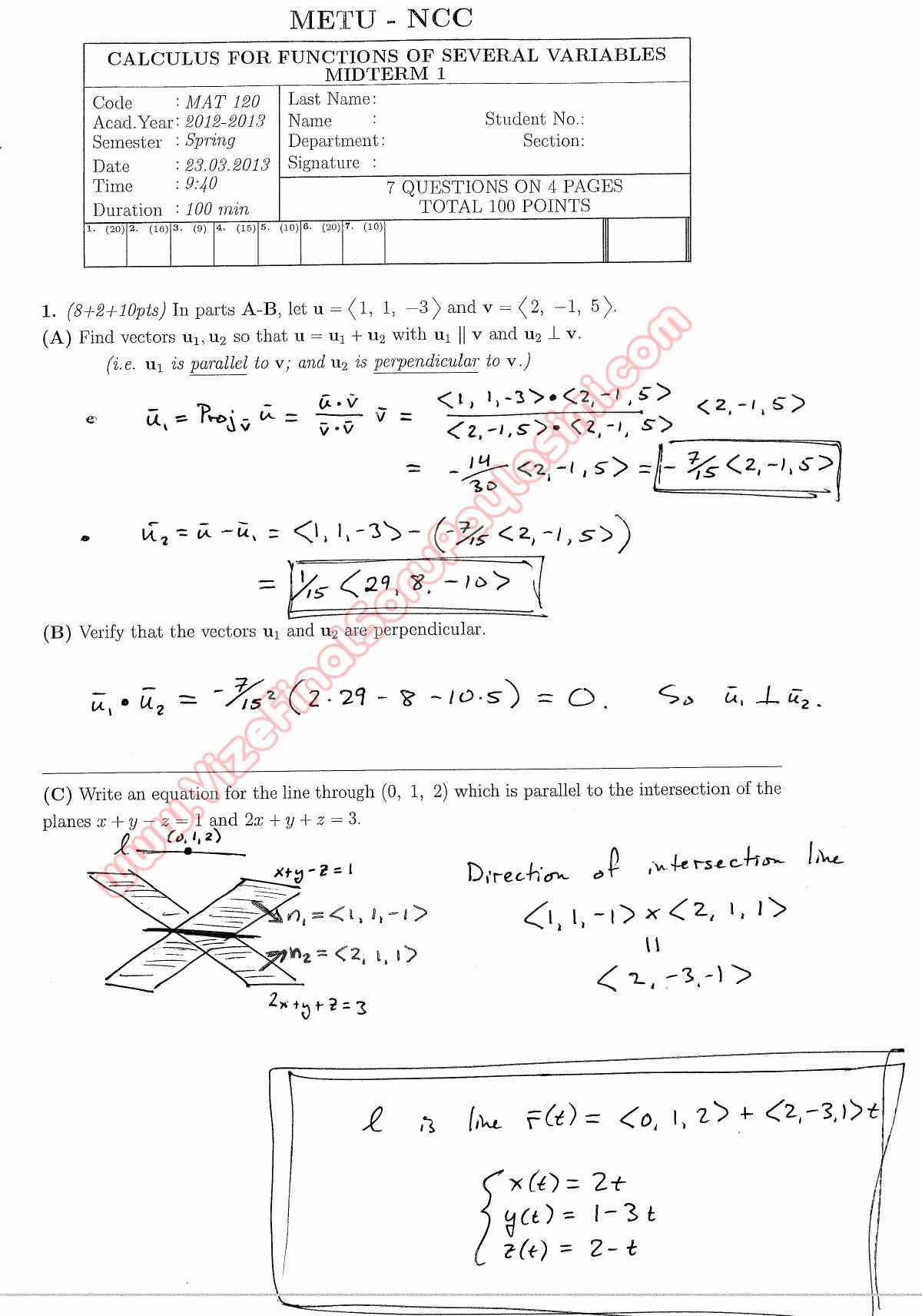 Calculus Functions Several Variables Questions Solutions Midterm Exam GERİ DÖN-