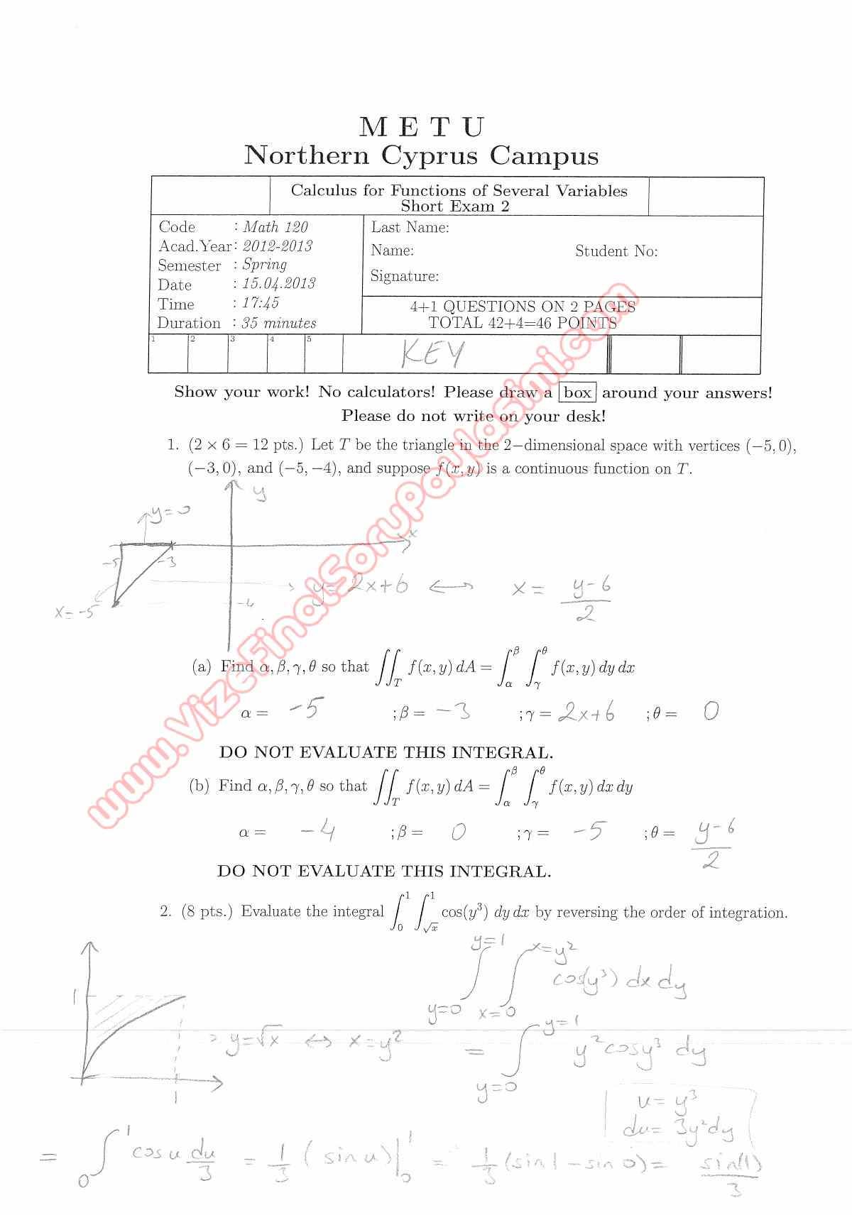 Calculus For Functions Of Several Variables Third Short Exam Questions And Solutions Spring 2013 9-11-2015, 00:27