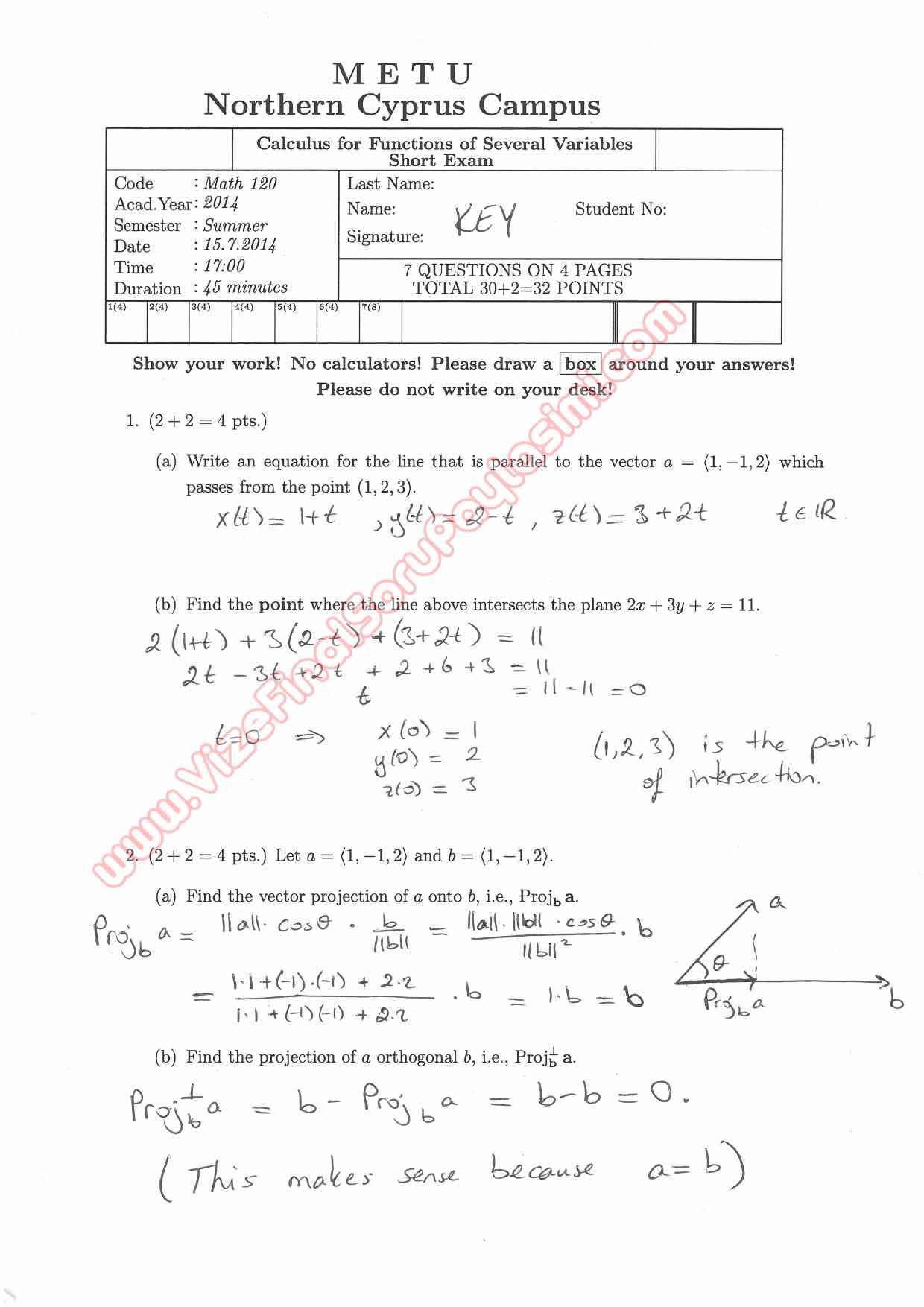 Calculus For Functions Of Several Variables First Short Exam Questions And Solutions Spring 2014 9-11-2015, 00:34