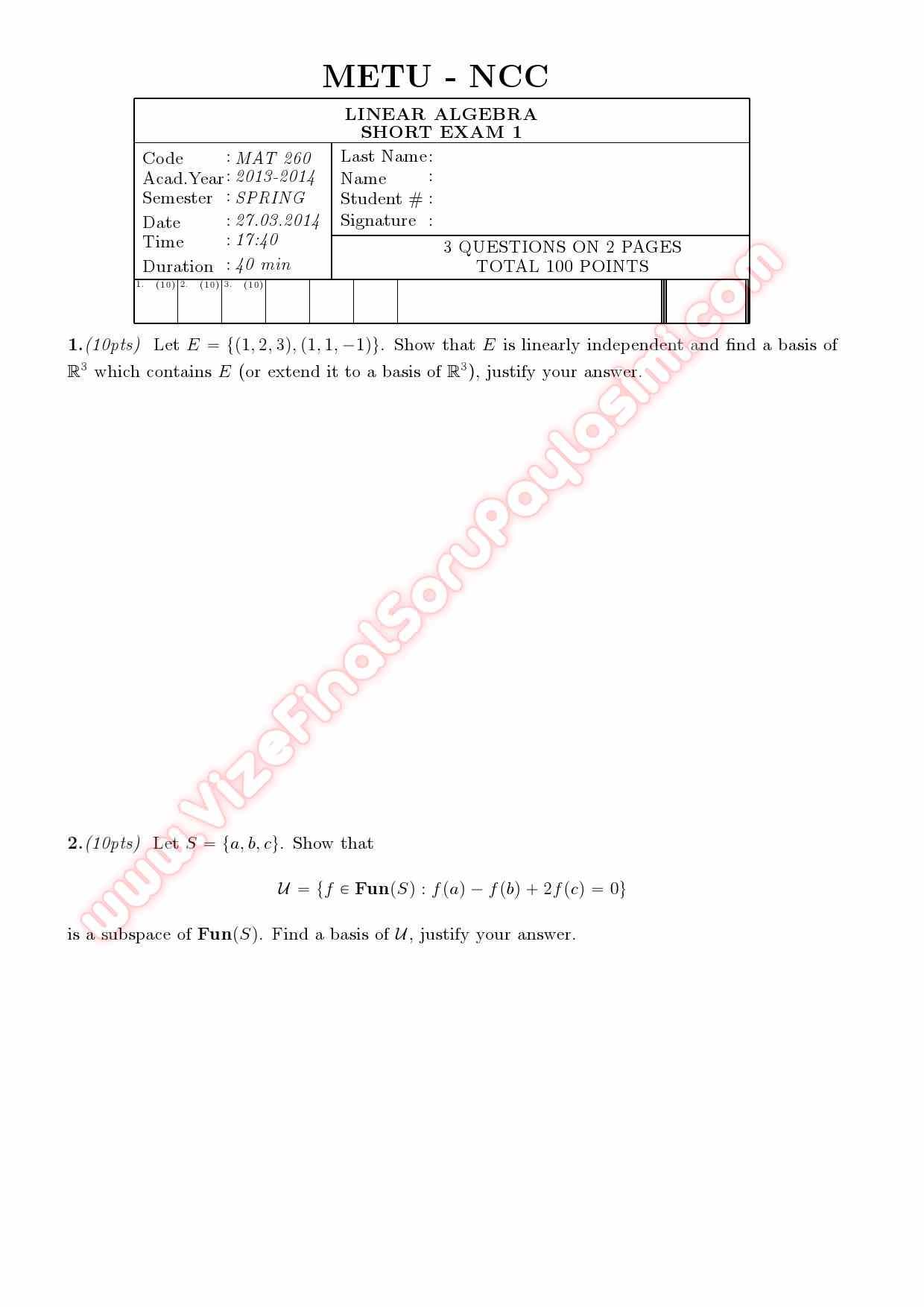 Vize ve Final Soruları / ODTÜ / Linear Algebra Lesson