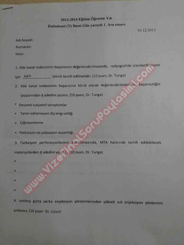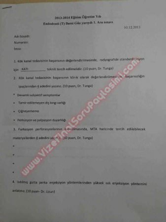 Vize ve Final Soruları / Ondokuz Mayıs Üniversitesi / Endodonti Dersi