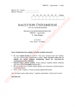 Algoritmalar Vize Soruları - 2013 25-04-2015, 00:01
