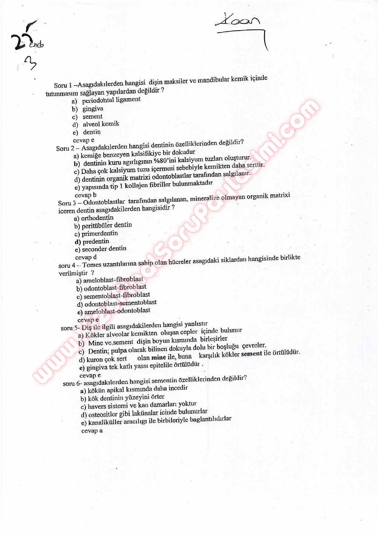 Endodontiye Giriş Final Soruları 2 11-11-2015, 17:41