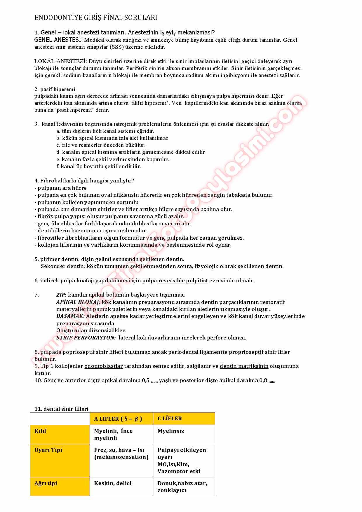 Endodontiye Giriş Final Soruları 2012 11-11-2015, 17:42