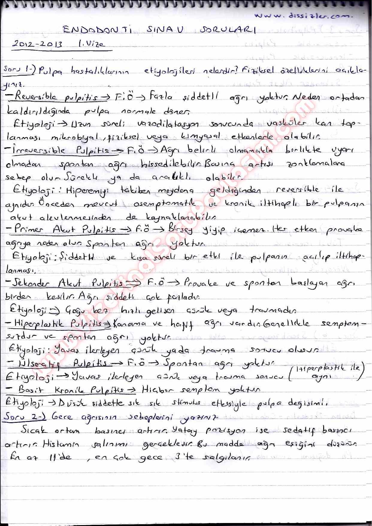 Endodontiye Giriş Vize Soruları Ve Cevapları 2012