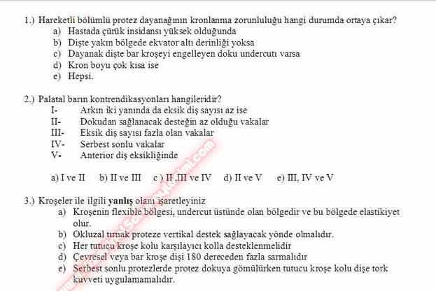 Protetik Dis Tedavisi vize sorulari GERİ DÖN-