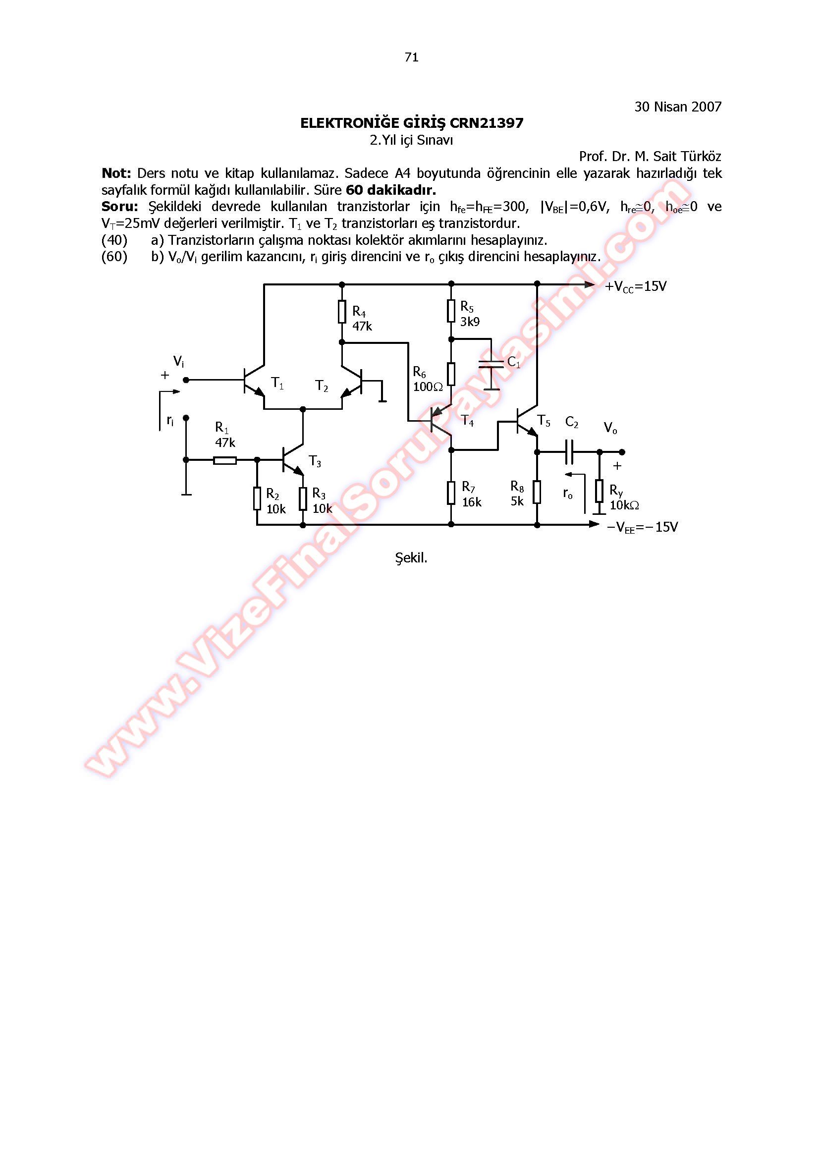 Vize ve Final Soruları / İstanbul Teknik Üniversitesi / Elektroniğe Giriş