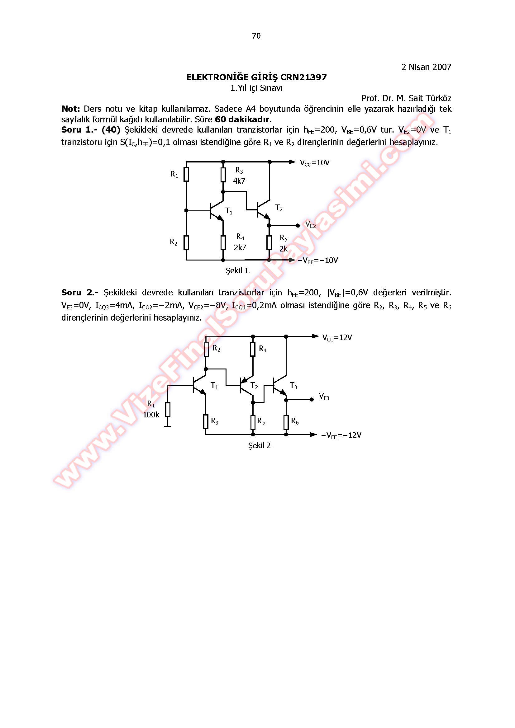 Vize ve Final Soruları / İstanbul Teknik Üniversitesi / Elektroniğe Giriş