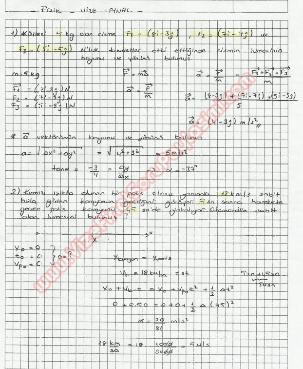 Fizik -1 Dersi Vize ve Final Soruları ve Cevapları
