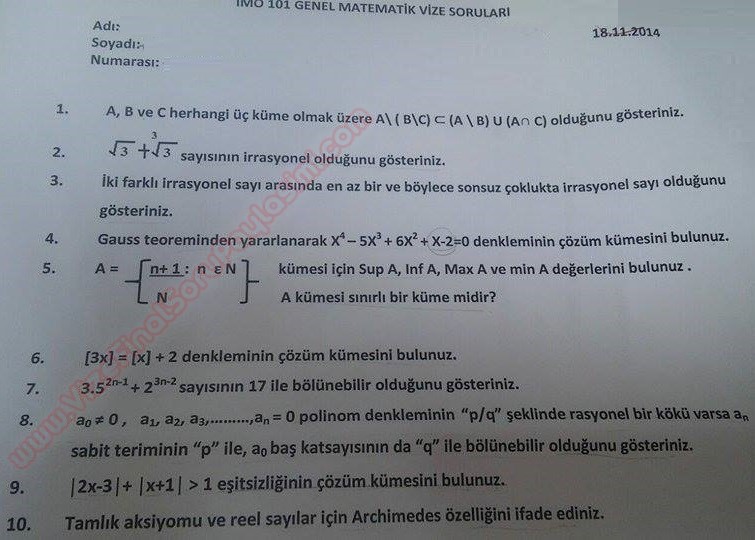 Genel Matematik Dersi Vize Soruları 16-11-2015, 01:53