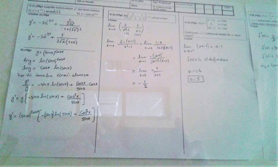 Matematik-1 Vize Soruları ve Cevaplar - 2015