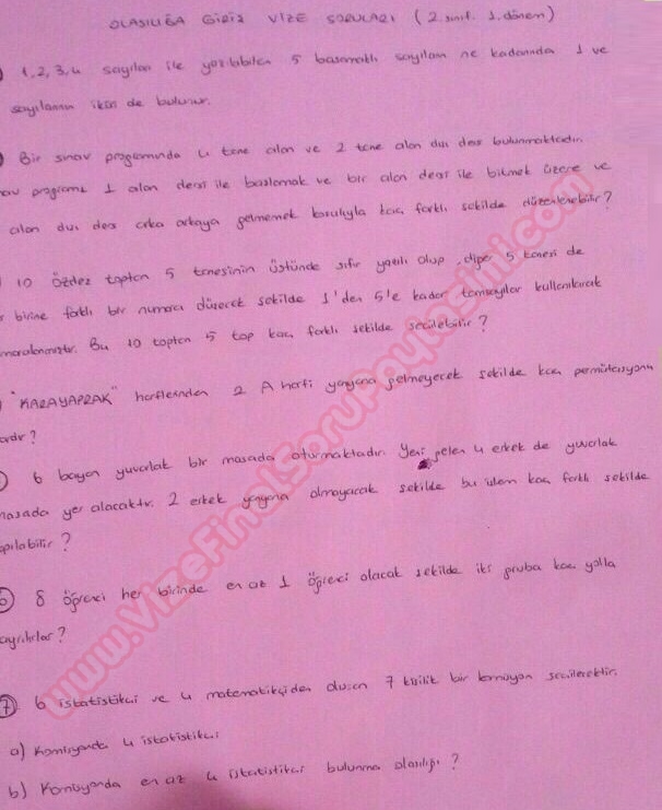 Vize ve Final Soruları / Çukurova Üniversitesi / Olasılığa Giriş Dersi