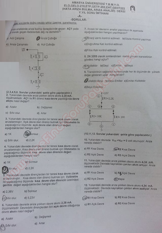Vize ve Final Soruları / Amasya Üniversitesi / Hata Arıza Bulma - Arıza analizi Dersi