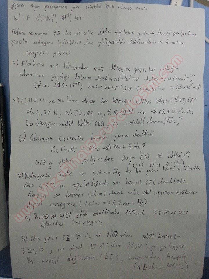 Genel Kimya Dersi Final Soruları - 2014 8-01-2015, 15:27